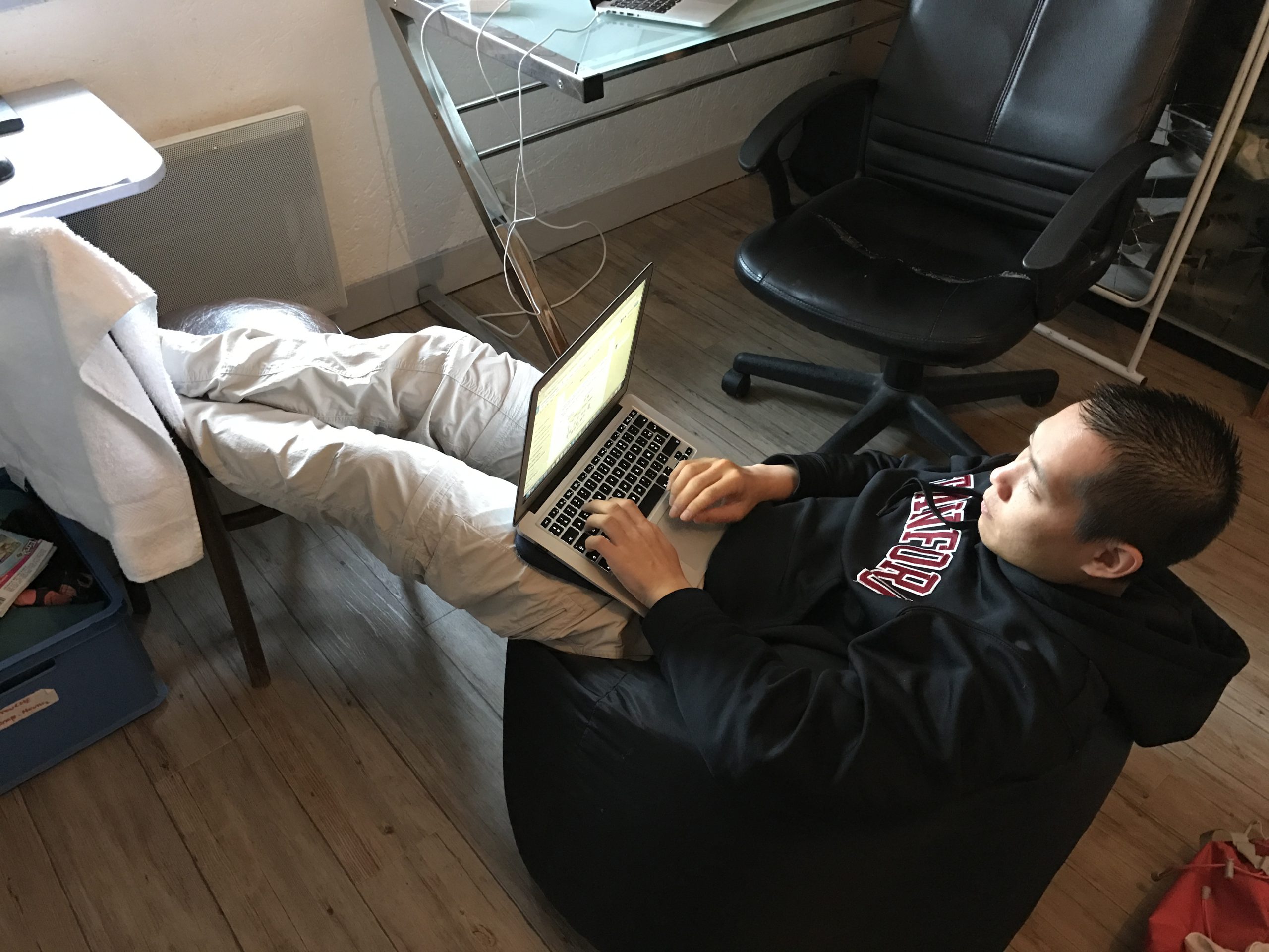 Très souvent j’étais en pleine écriture, au milieu d’une phrase ou d’une bonne inspiration quand j’entendais Olivier crier : “standup !!!”, mot sonnant le glas de mon inspiration… Quelle frustration !!!